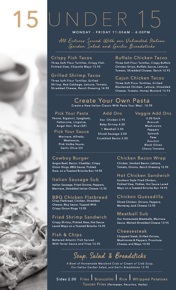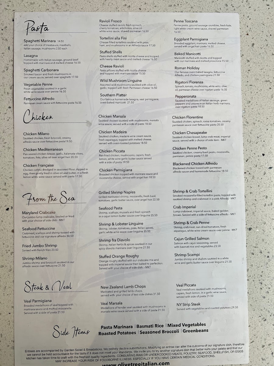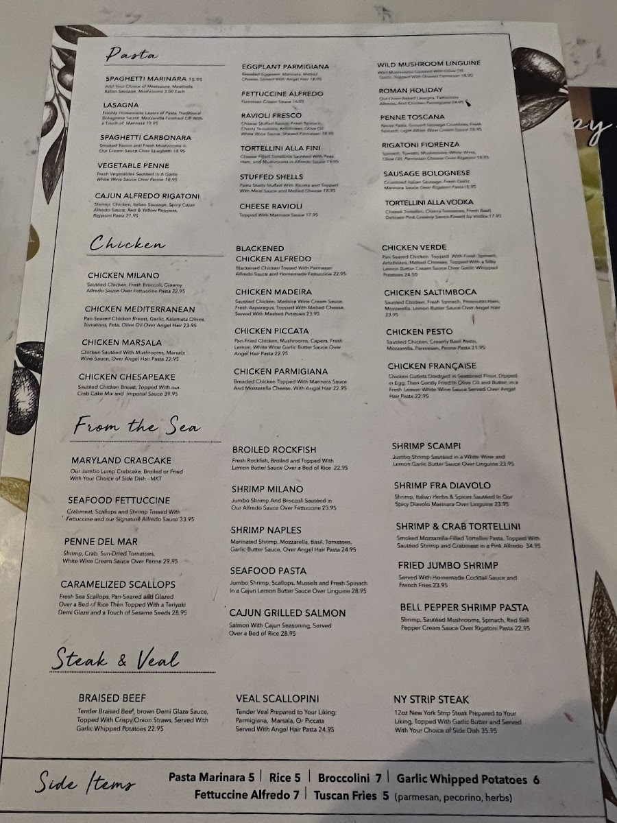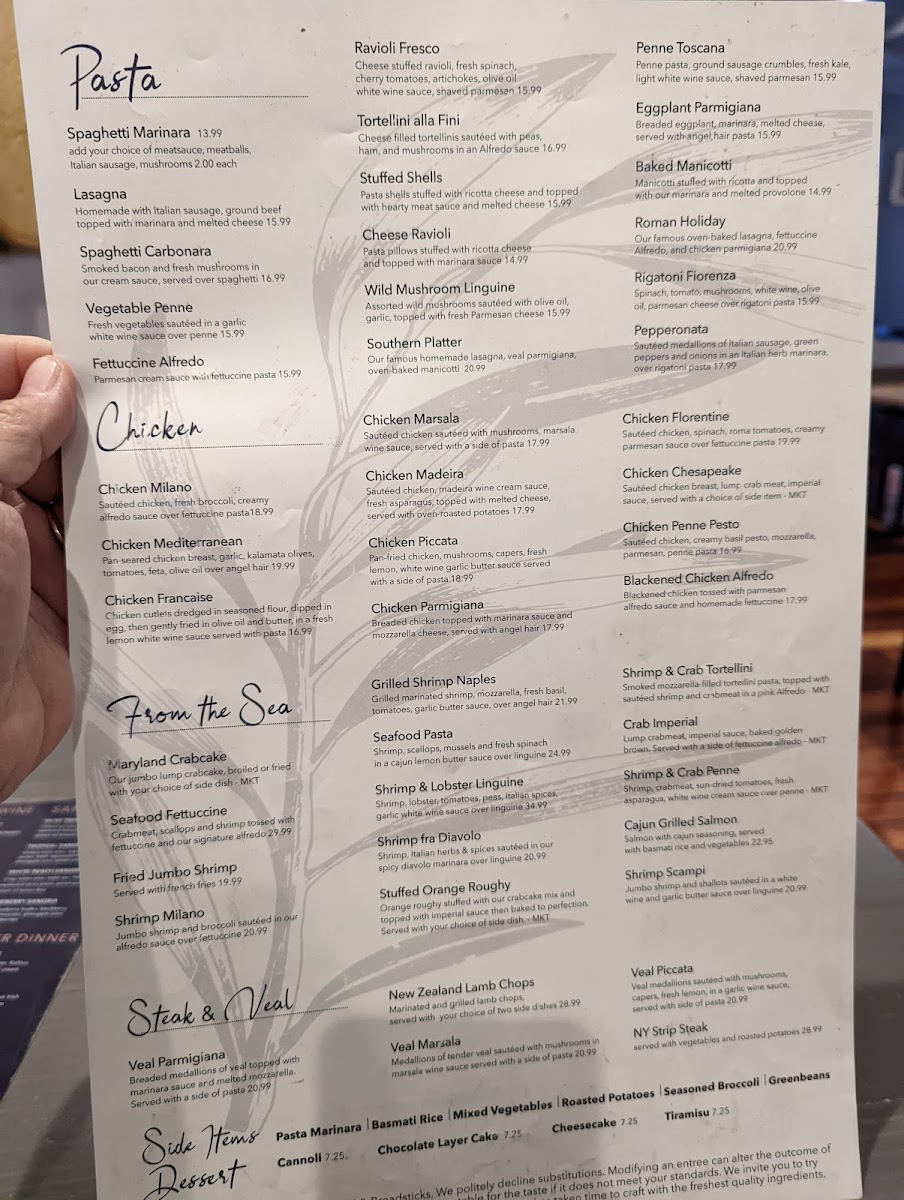 Our famous oven-baked lasagna, fettuccine Alfredo, and chicken parmigiana