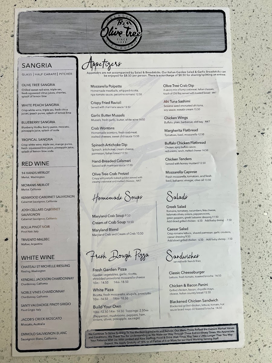 Penne pasta, ground sausage crumbles, fresh spinach, light white cream wine sauce, shaved parmesan